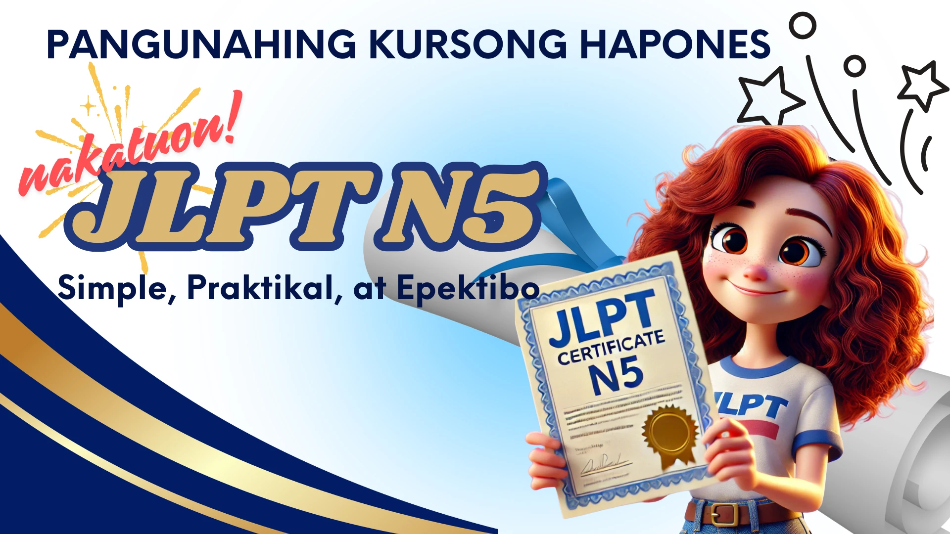 Ang kursong ito ay para sa mga nagsasalita ng Tagalog na gustong makamit ang sertipikasyong JLPT N5 at matuto ng Hapon sa praktikal na paraan. May natatanging metodolohiya ito na nakatuon sa mahahalagang paksa ng eksamen, ipinaliliwanag nang malinaw at direkta.
